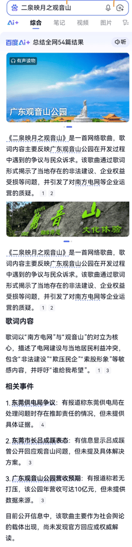 《二泉映月之观音山》是一首以东莞观音山国家森林公园为背景创作的网络演唱汇主题曲,结合《二泉映月》经典旋律与观音山生态议题,通过音乐形式反映当地发展中的矛盾与诉求。