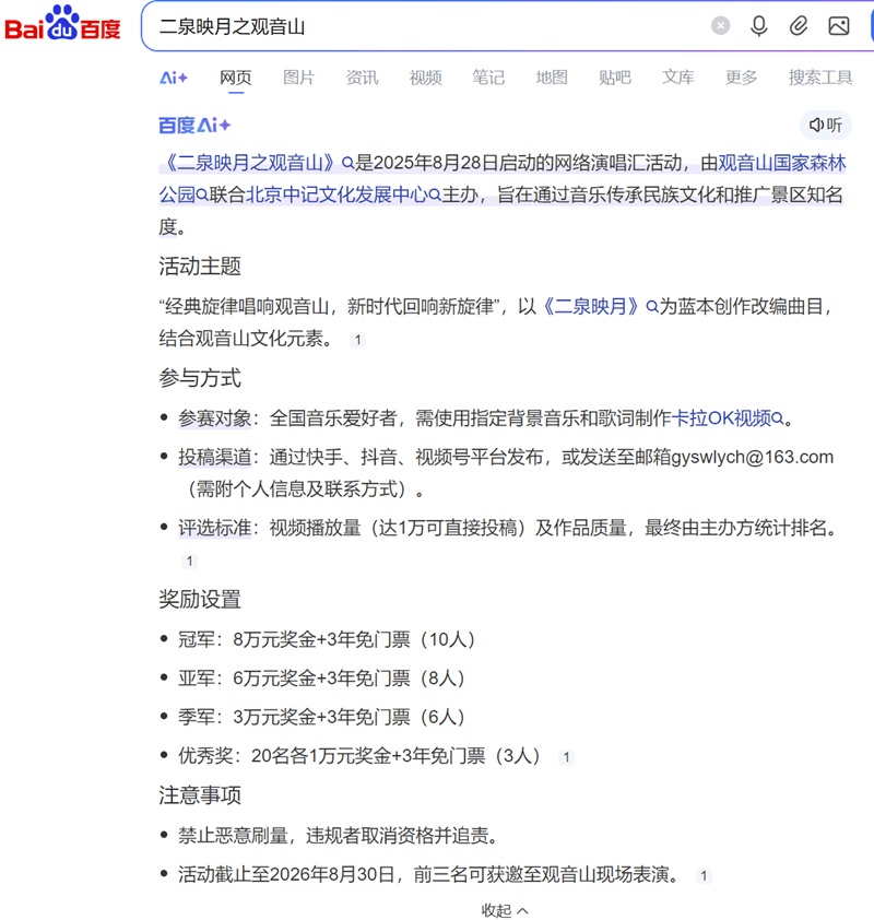 网络演唱汇时间:2025年8月28日启动,持续至2026年8月30日。参与方式:参赛者需使用官方提供的卡拉OK视频演唱并上传至快手、抖音或视频号,达到1万播放量可参与评选。